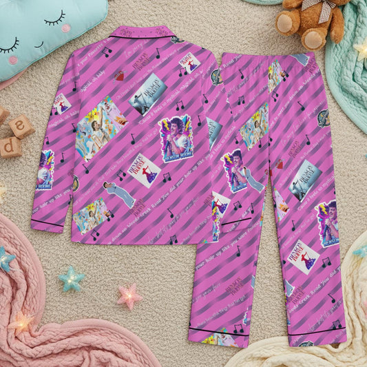 All-Over Print Children's Satin Pajama Set With Long Sleeve